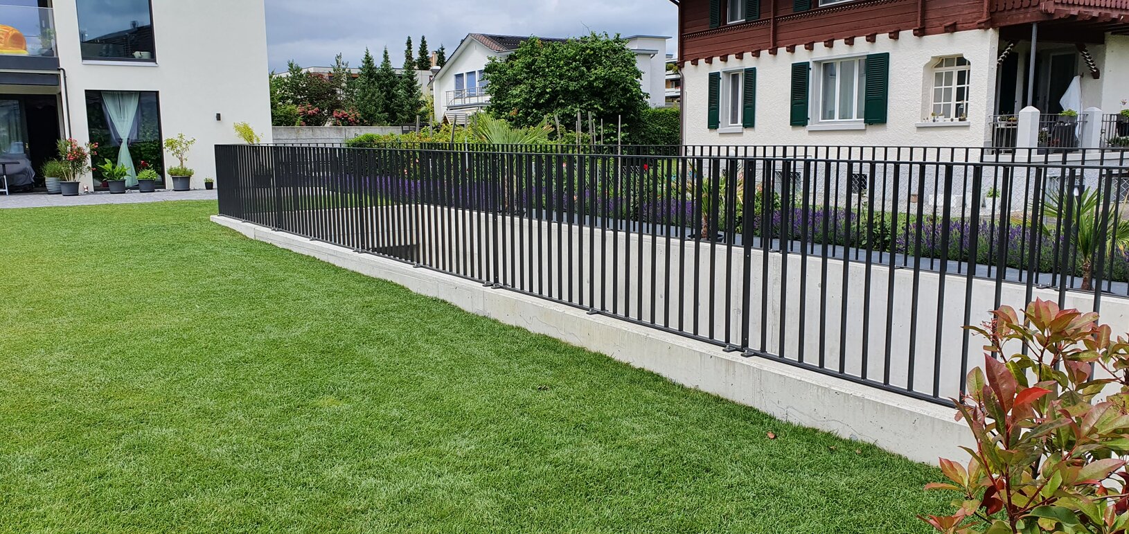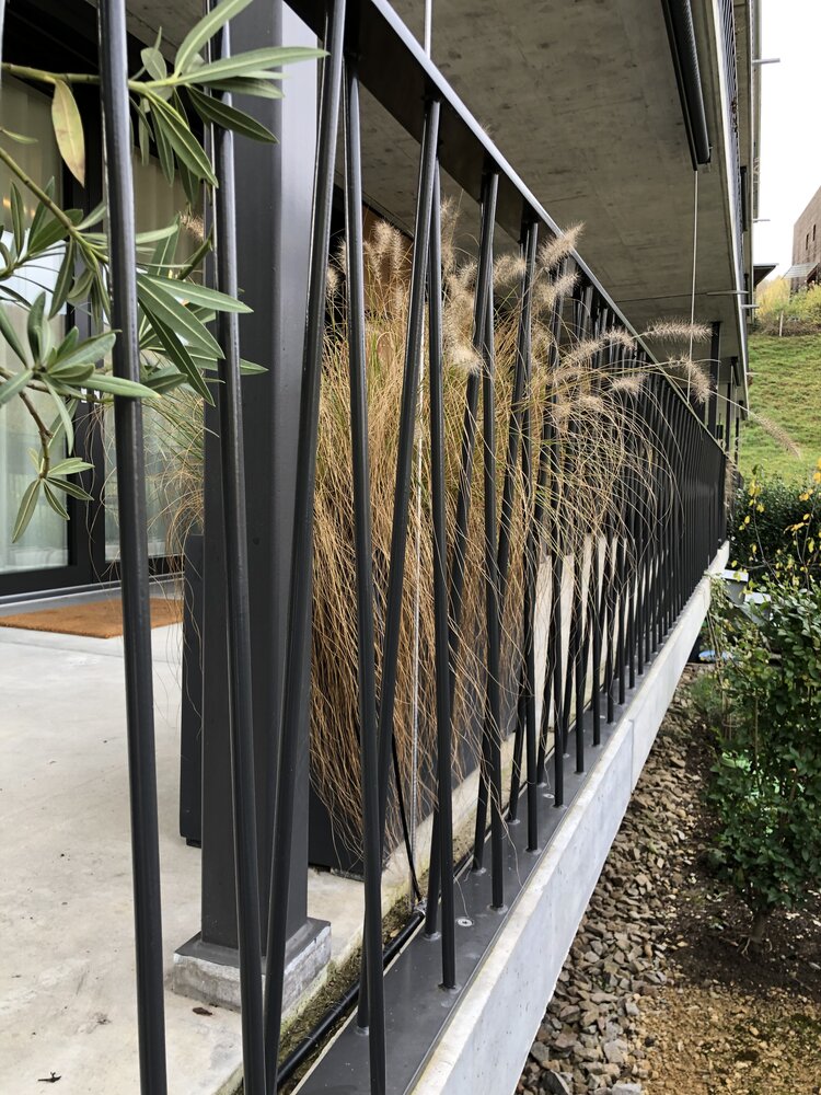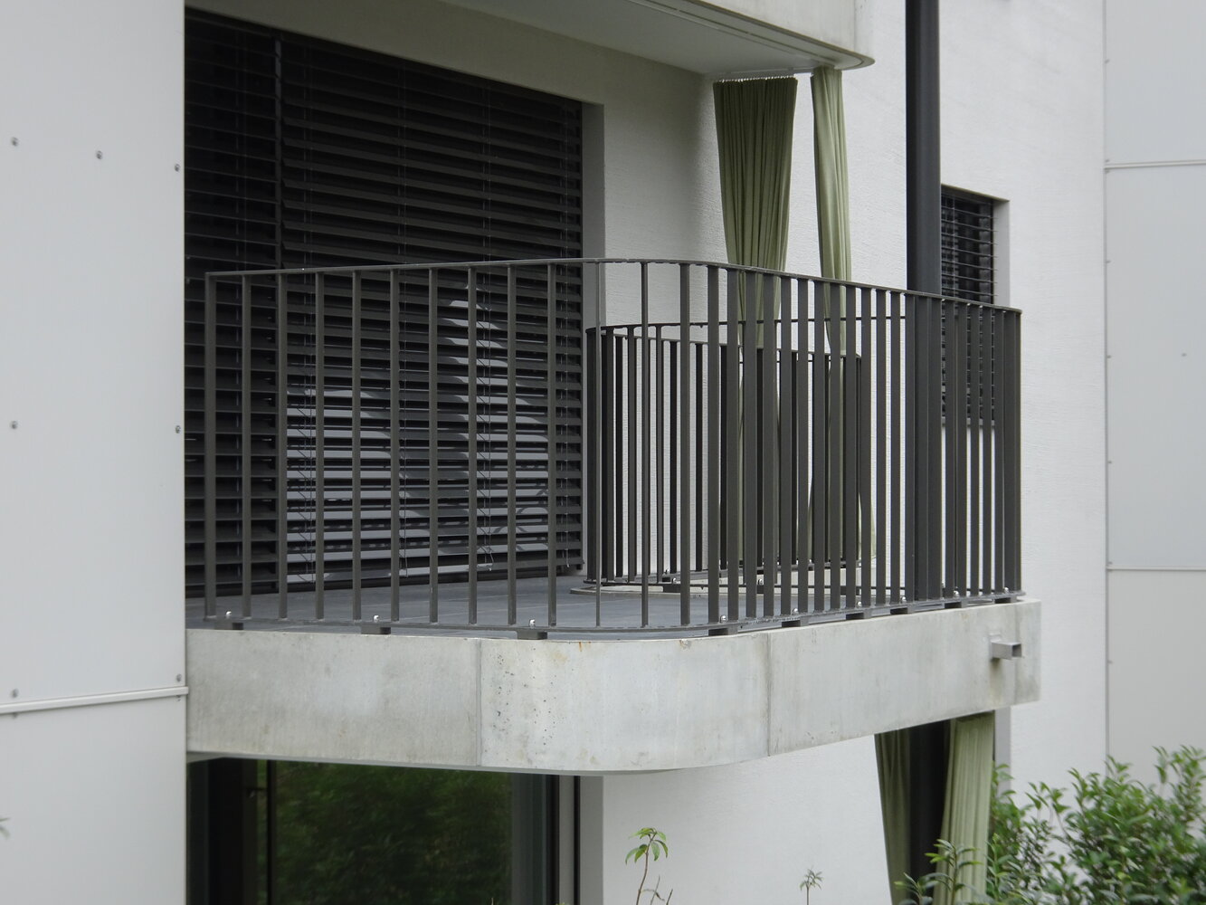 Schräge Anordnung der Staketen aus Rundeisen, Wiedenhub Basel