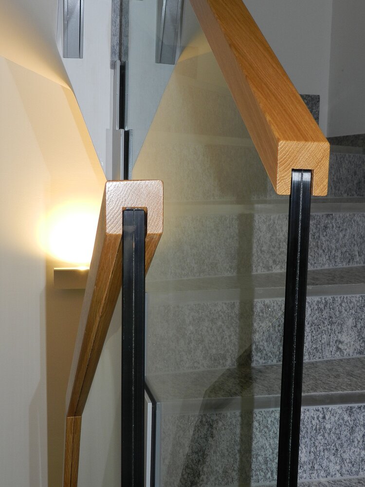 Ganzglasgeländer mit Holzhandlauf Detail