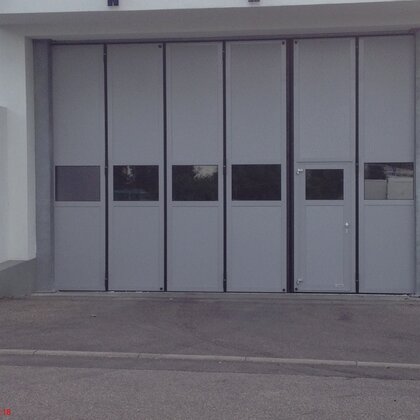 Ein Faltschiebetor ist die ideale Lösung für breite Hallenöffnungen.