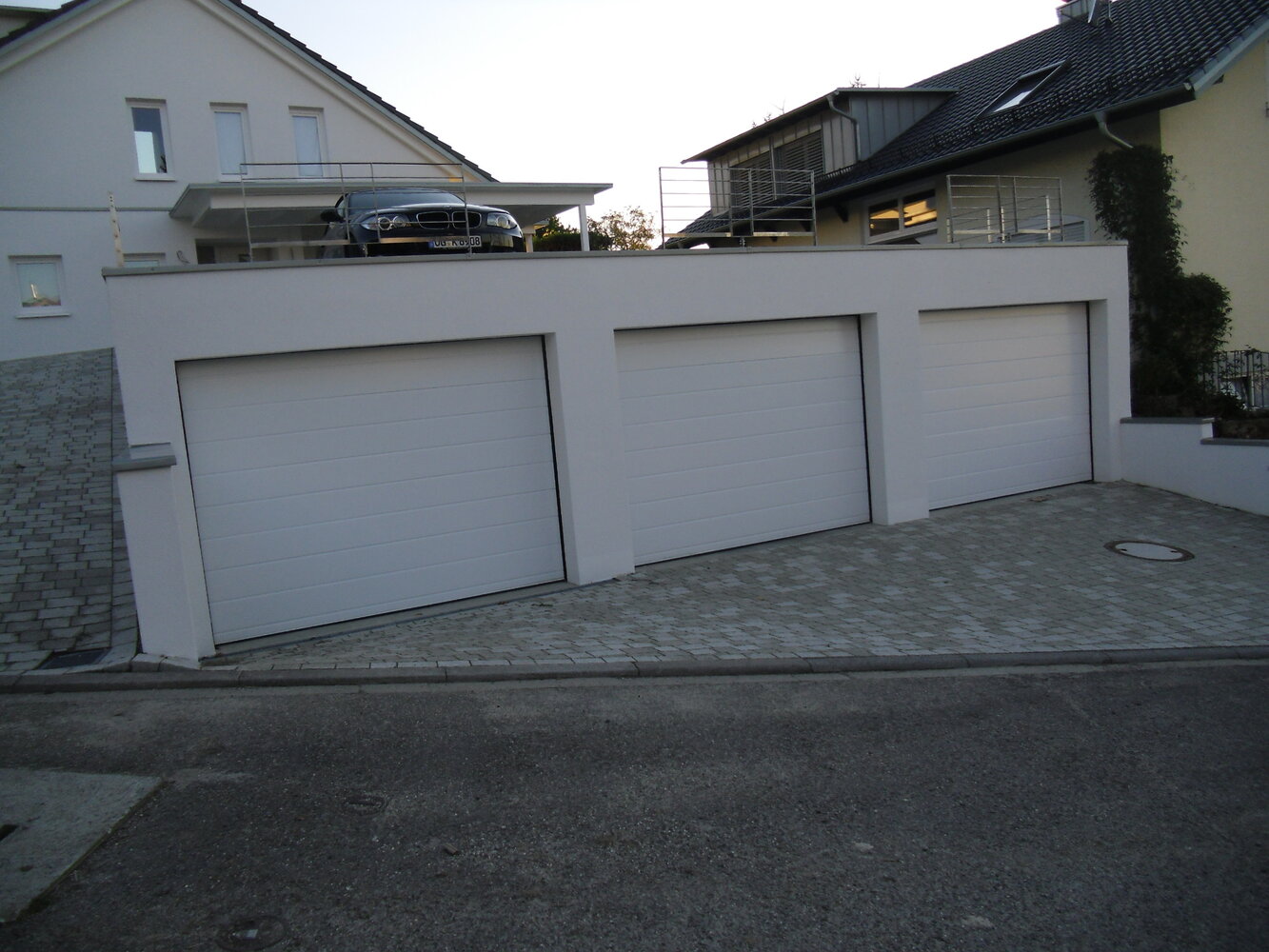 Sektionaltore haben gegenüber den klassischen Kipp- oder Flügeltoren den Vorteil, dass sie nach außen keinen Raum zum Öffnen benötigen. Die Sektionen werden aneinander befestigt und in Schienen geführt. Somit ist das Tor nach dem Öffnen in einer ebenen Position unter der Decke oder an der Garagenwand befestigt. Um mehr Licht in Innere zu lassen, können Sektionaltore optional mit einem Lichtband ausgestattet werden.